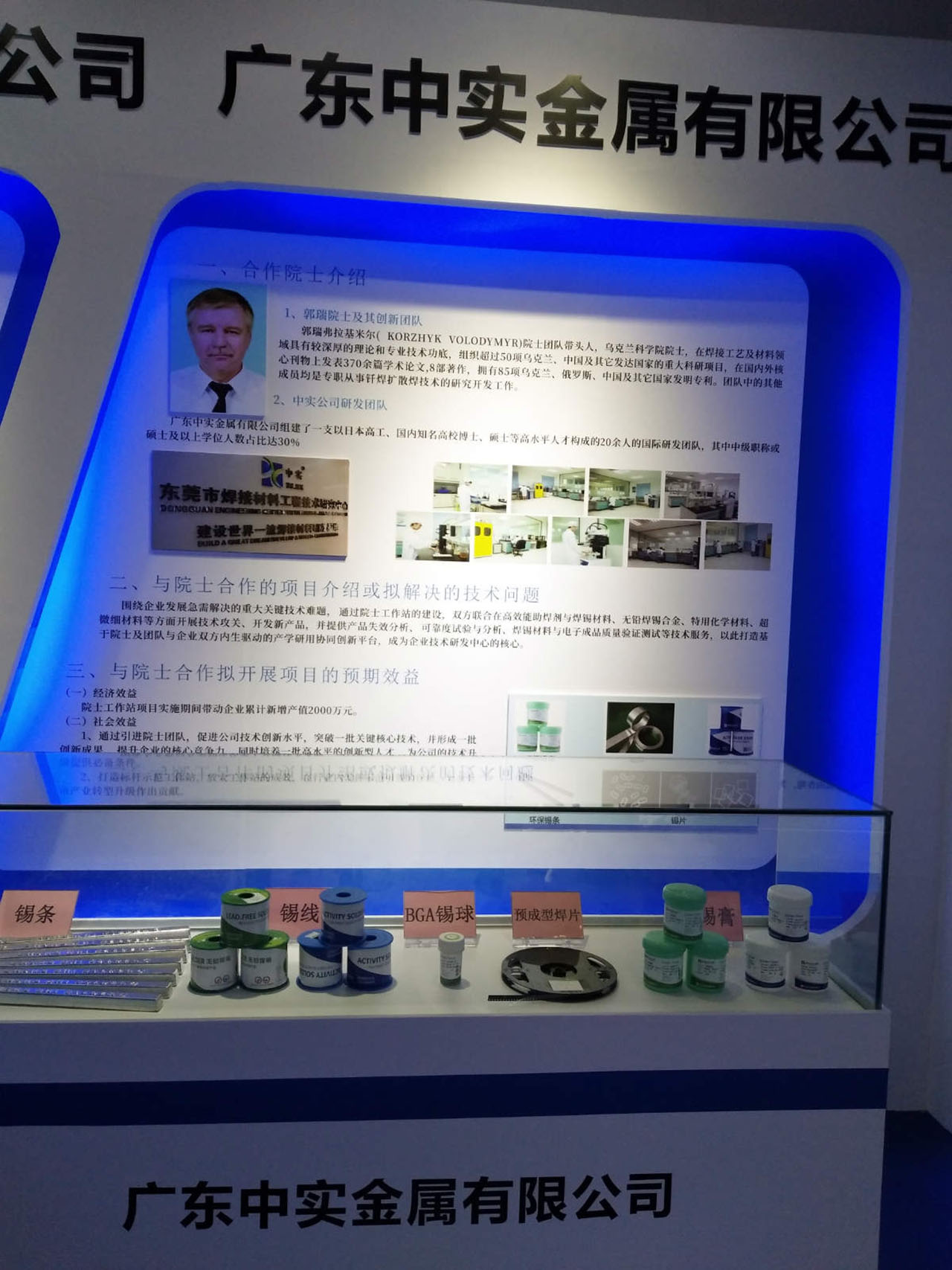 其中廣東中實金屬有限公司與郭瑞?弗拉基米爾院士共同承建的先進焊接材料院士工作站也參與此次盛會,并呈現了院士工作站建站以來多樣焊料科研成果。