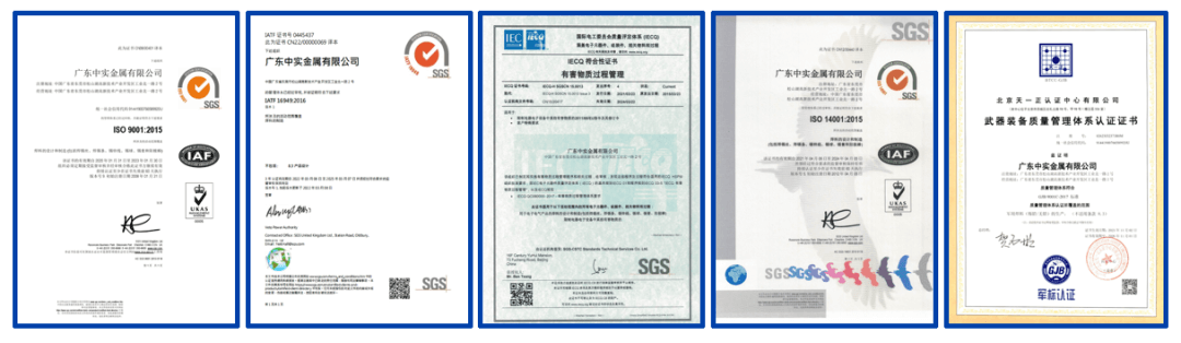 中實金屬目前擁有多項管理體系,覆蓋質(zhì)量、環(huán)保、職業(yè)健康等多個板塊,先后通過多項管理體系認(rèn)證:?