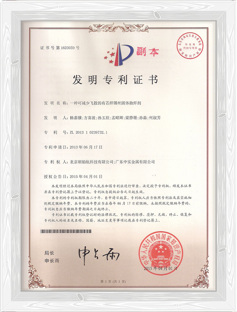 一種可減少飛散的有芯焊錫絲固體助焊劑